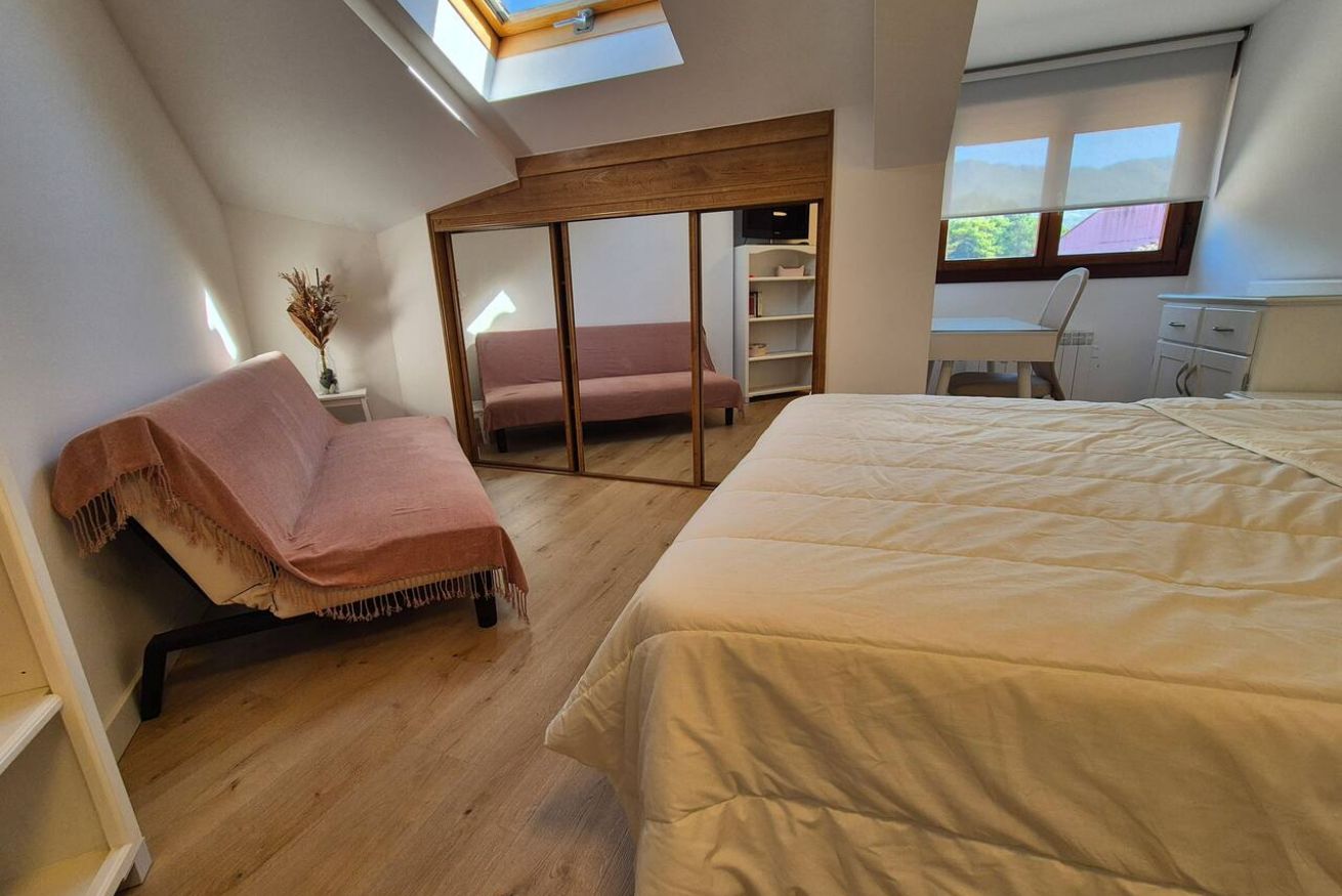 Ático luminoso en Nueva de Llanes, ideal para explorar las playas de la zona. Con 2 dormitorios con camas de matrimonio, salón y cocina integrados y sofá cama para más comodidad. Incluye plaza de garaje en el mismo edificio, con acceso directo desde el ascensor. Perfecto para disfrutar del entorno natural de Llanes con toda comodidad.